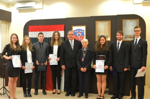 Díjátadó ünnepélyen vehették át az elismeréseket a "Sedes Sapientiae", "Kapuvár Város Érdemes- Sportolója, - Diákja" és "Sherer Gyula" kitüntetés érdemlői szombaton, a Városháza Nagytermében. Sedes Sapientiae ösztöndíj A Sedes Sapientiae ösztöndíj elsősorban a tanulásban kiváló teljesítményt nyújtó közép- és felsőfokú oktatási intézményben tanuló fiatalok anyagi megbecsülésére, kitüntetésére, további ösztönzésére szolgál. A középfokú oktatási intézményben tanulók („A” típusú), a felsőfokú oktatási intézményben tanulók pedig („B” típusú) pályázatot nyújthattak be. Tanévenként 3 középiskolás és 3 felsőoktatásban tanuló nyerheti el az ösztöndíjat, melynek összege személyenként egyösszegben 50.000,- Ft. A Humán Bizottság átruházott jogkörében 2015. szeptember 28.-i bizottsági ülésén 152/2015.(IX.28.) határozatával döntött a beérkezett pályázatokról. Összesen 10 pályázat érkezett. Nagy Petra Nagy Petra Nagy Petra a Felsőbüki Nagy Pál Gimnázium XII. évfolyam végzős tanulója, az elmúlt két félévben kiváló tanulmányi eredménye volt, emellett 2014. 05.22.-án angol középfokú írásbeli, majd 2014.10.8-án angol középfokú szóbeli nyelvvizsgát tett. A Diamant KSE aktív tagja, országos táncbajnokság látványtánc kategóriában l. helyezett, az Európa bajnokság látványtánc kategóriában szintén I. helyezett volt. Petra középiskolai tanulmányi alatt már a 4.-dik alkalommal részesül a kiváló tanulmányi eredménye és a helyi közéletben, a látványtáncban elért eredményei figyelembe vételével az önkormányzati ösztöndíjban. Molnár Noémi Lili: Molnár Noémi Lili a Felsőbüki Nagy Pál Gimnázium XII. évfolyam végzős tanulója, az kiváló tanulmányi eredménye mellett angol középfokú írásbeli és szóbeli nyelvvizsgája is van. A Kapuvári Kick Boksz Egyesület aktív kiváló tagja, Országos Verseny (4Fight Kupa 3. és 4. fordulójában is) I. helyezett volt. Noémi 2. alkalommal részesül kiváló tanulmányi eredménye és közéleti sport tevékenysége figyelembe vételével az önkormányzati ösztöndíjban. Lukácsi Tünde: Lukácsi Tünde a Felsőbüki Nagy Pál Gimnázium XII. évfolyam végzős tanulója, kiváló tanulmányi eredménye mellett,2014. 10.8.-án komplex angol középfokú nyelvvizsgát tett. Az országos népdaléneklési és minősítő verseny megyei döntőjén ezüst minősítést szerzett. Az Ars Camerata kórus támogatásával Bécsben a Summa Cum Laude Fesztiválon is részt vett. Tünde kiváló tanulmányi eredménye és közéleti, énekversenyen elért eredménye alapján első alkalommal részesül önkormányzati ösztöndíjban. Vida Balázs: Vida Balázs Vida Balázs az ELTE Budapest Bölcsészettudományi Kar Angol és Matematikatanári Mesterszak hallgatója. Az elmúlt két féléven kiváló tanulmányi eredménye (4,83 és 4,86) mellett az egyetemen rendszeres résztvevője a Közép-európai Egyetem Vitakörének, csatlakozott a Budapesti Toastmasters Retorika Klubhoz. Kapuváron a Szent Anna Plébánia Egyházközösség aktív tagja. Angol és német komplex középfokú és angol felsőfokú „C” nyelvvizsgája van. Balázs kiváló tanulmányi eredményei és közéleti tevékenysége alapján első alkalommal részesül az önkormányzati ösztöndíjban. Molnár Klaudia: Molnár Klaudia Molnár Klaudia a Budapesti Corvinus Egyetem Közgazdaságtudományi Kar II. évfolyamos hallhatója. Az elmúlt két félévben kiváló tanulmányi eredménye (4,4 és 4,79) mellett rendszeresen táncol a Belvárosi Tánciskola tagja (a Kapuvári Diamant Tánciskolából került át a távolság miatt), tagja a Heller Farkas Szakkollégiumnak, és közösségi szolgálatáért Lupus Activitus díjat kapott 2015. áprilisában. Klaudia kiváló tanulmányi eredményei és közéleti tevékenysége alapján első alkalommal részesül az önkormányzati ösztöndíjban. Nagy Noémi: Nagy Noémi az ELTE Budapest Pedagógiai és Pszichológiai Kar valamint az ELTE BTK Tanáci Mesterképzés hallgatója. Az elmúlt két féléven kiváló tanulmányi eredménye (4,43 és 4,73) mellett részt vett a Délkelet-Európa Kutatóintézet konferencia-szervezésében, Kapuváron a Rábaközi Művelődési Központ és Könyvtár városi programjainak szóvivője és a Kapuvári Versmondó Stúdió tagja. Noémi kiváló tanulmányi eredményei és közéleti tevékenysége alapján első alkalommal részesül az önkormányzati ösztöndíjban Kapuvár Városi önkormányzat Képviselő-testülete Kapuvár Város Érdemes Diákja KITÜNTETÉST ADOMÁNYOZOTT Nagy Zoltán-nak Nagy Zoltán Nagy Zoltán 2015. május-júniusi vizsgaidőszakban érettségizett a kapuvári Felsőbüki Nagy Pál Gimnáziumban kiváló, 81,4 %-os vizsgaeredménnyel. Tanulmányai során, 4 tanéven keresztül tartósan kiemelkedő eredményt ért el, kitartó munkájának eredményeként minden tanév végén kiváló tanulmányi munkájáért és példamutató kötelességteljesítéséért dicséretben részesült. Nagy szorgalommal, kitartással sajátította el a különböző tantárgyak ismereteit, különösen a természettudományokra fektetett nagy hangsúlyt. Biológia és kémia tantárgyakból érettségizett emelt szinten, olyan eredményekkel, amelyek lehetővé teszik számára, hogy orvosi egyetemen folytassa tanulmányait. Gimnáziumi tanulmányai során számos versenyen vett részt, például a megyei helyesírási versenyen is képviselte az iskolát. Nagyon szépen és igényesen rajzolt, munkái többször díszítették az iskola tereit. Kapuvár Városi Önkormányzat KÉPVISELŐ-TESTÜLETE KAPUVÁR Város Érdemes Sportolója KITŰNTETÉST ADOMÁNYOZOTT Pantelics Bencének Hámori György és Pantelics Bence Pantelics Bence a Castrum SC Kapuvár Sportolója, a Felsőbüki Nagy Pál Gimn