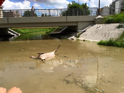 Csütörtök délelőtt, betért a helyi közkedvelt szórakozó helyre, egy környékbeli patás Szarvas Tehén. Mivel a csapos úgy döntött, hogy a farsang már elmúlt, és azóta illett volna kijózanodnia a kuncsaftnak, ezért egyértelműen, nem szolgálta ki a hívatlan vendéget. Aki vélhető szerelmi bánatának következtében a szomszédos Kis-Rába folyóba ölte magát. Mindez történhetett volna így is. De természetesen nem ez a sztori valóságtartalma. Ebben az esetben ugyanis, már érkezett volna valaki, hogy kivizsgálja a tragikus halálesetet. Ennek hiányában viszont ott árválkodik a dög a terasz előtt, bent a vízben, a pizza fogyasztó vendégek nagy örömére. A facebookon már volt aki gumimatracnak is nézte, és már zarándokoló óvodás csoportok is megjelentek a helyi látványosság körül. Egy leleményes helyi vállalkozó, pedig belépődíjat, és hídpénzt szed a Szent Anna híd nyugati oldalán áthaladni kívánóktól, és a már a vattacukrosok, és héliumos szarvas lufi árusok is megérkeztek. Lassan már mindenki megérkezett, csak azon vízügyi illetékesek hiányoznak, akiknek e szerencsétlen vad tetemét el kellene távolítani! Reméljük a legjobbakat, és addig is üzenjük a gasztronómia pizza fellegvárába, hogy mindenki nyugodjon le, Kapuváron is minden csoda, csak három napig tart! (Hamarosan újabb nagyvadak várhatóak, és akkor már senki sem fog megrökönyödni, egy épp háton úszó szarvason!) Twitter