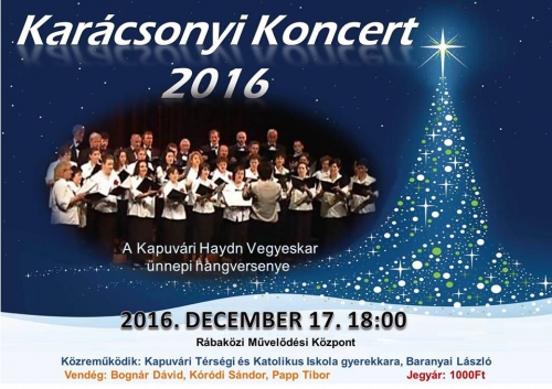 2016. december 17-én kerül megrendezésre, a már hagyományos Karácsonyi koncert, a Rábaközi Művelődési Központban. Ne maradj le róla, váltsd meg előre a jegyed a Művelődési Központban.