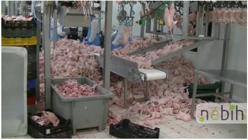 Csirkehús a földön, kétes eredetű baromfi termékek. Súlyos technológiai hiányosságok miatt felfüggesztette a Szabolcs-Szatmár-Bereg megyei Tiszavasváriban egy baromfi vágóhíd működését a Nemzeti Élelmiszerlánc-biztonsági Hivatal (Nébih) - közölte a hivatal szerdán az MTI-vel. Az üzem a működését a technológiai hiányosságok kijavítása után újra megkezdhette, az emberi fogyasztásra alkalmatlan termékek elszállítása és ártalmatlanítása azonban még több napig eltarthat. A közlemény szerint a Nébih szakemberei a Szabolcs-Szatmár-Bereg megyei, bérvágással foglalkozó baromfi vágóhíd ellenőrzésekor megállapították, hogy a fagyasztásra szánt termékeket több napig a folyosón tárolták, a vágószalagról közvetlenül a padozatra hullottak a csirkék, az emberi fogyasztásra szánt szárnyasokat a földről szedték össze a dolgozók. A hatóság több mint 24 tonna nem nyomon követhető, jelöletlen, illetve emberi fogyasztásra alkalmatlan terméket vont ki a forgalomból. További több mint 100 tonna, selejtként megjelölt húst hatósági felügyelet mellett semmisítenek meg. A Profit Food Kft. és a Dob-Tak Kft. vállalkozásokkal szemben milliós nagyságrendű bírság várható - tájékoztatott a Nébih.Twitter