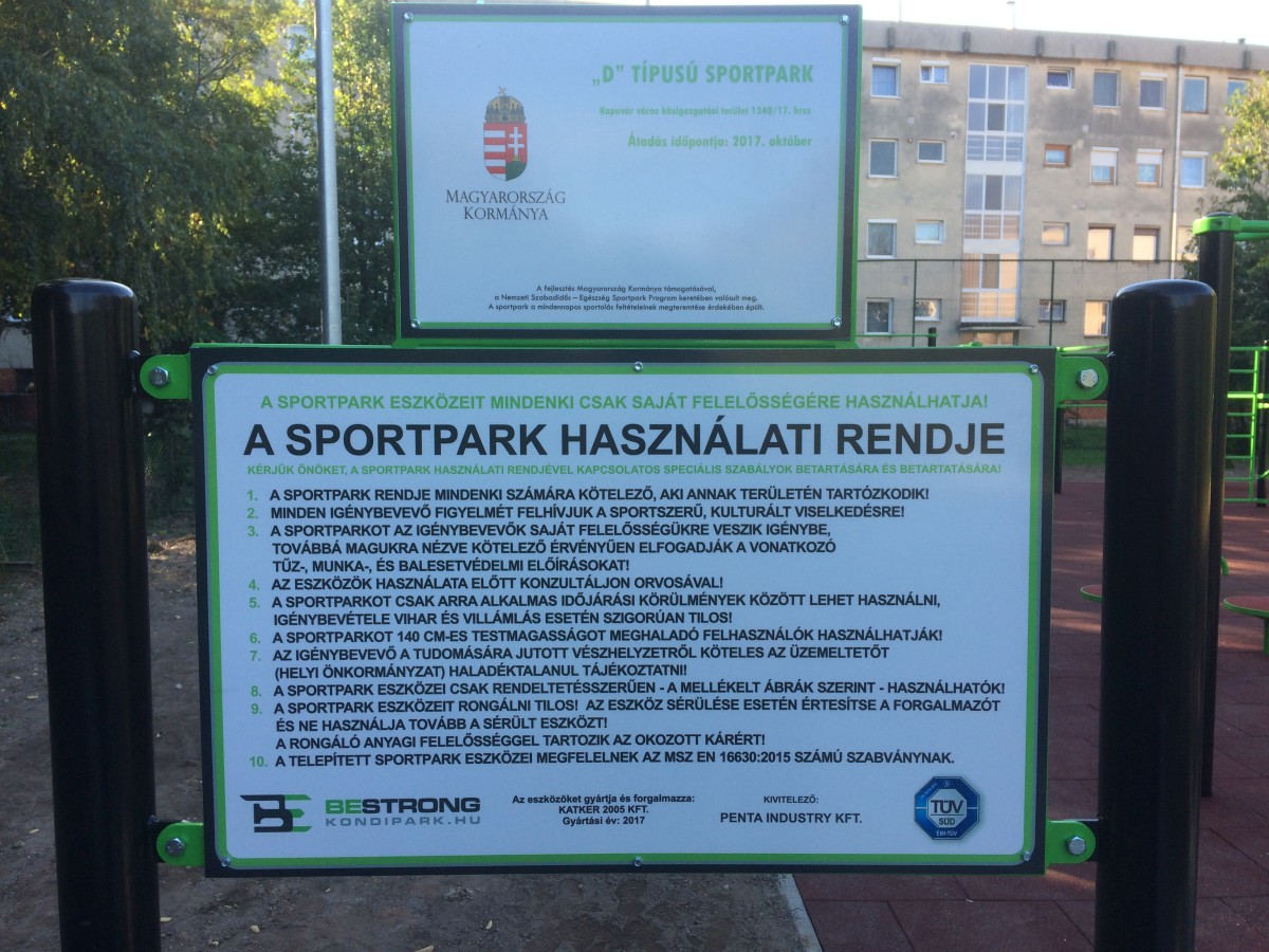 Nagy örömnek néznek elébe a sportot, és a mozgást szerető kapuváriak, ugyanis hamarosan átadásra kerül az Street Workout pálya a lakótelepen, ami egyszerre akár 20 - 30 sportoló mozgásigényét is képes lesz kielégíteni, a több mint 170 m2-es alapterületen fekvő Sport Park. A pályázatból megvalósult projektet a BeStrong Kondipark.hu debreceni cég ivitelezésében valósult meg. Az országban már több, mint 300 helyen létesítettek ilyen sportpályát, most pedig Kapuvár is büszkélkedhet egy ilyen parkkal. Az átadás, és a lakossági használatba vétel még kicsit várat magára, de a helyszínen szemrevételeztük, és már rá is próbáltunk egy-egy porteszközre. A park minőségileg kifogásolhatatlan, az EU-s szabványoknak megfelelő. Ennek ellenére fontos betartani az eszközök használati utasításait, a balesetek elkerülése érdekében! Aki esetleg nem tudná, hogy melyik eszköz épp milyen izomcsoport erősítésére szolgál, az az információs tábla segítségét is igénybe veheti, illetve a YouTube, vagy kondipark.hu oldalán kattogtatva könnyedén összerakhatja saját maga edzéstervét, és már meg is teheti az első lépéseket saját egészsége megóvása érdekében. Természetesen mielőtt bele kezdenénk a Street Workout programban, érdemes egy edző, vagy tapasztalt sportoló tanácsait kikérni. Köszönjük a Városvezetésnek ezt a remek pályát, és örömmel várjuk az ünnepélyes átadót! Twitter