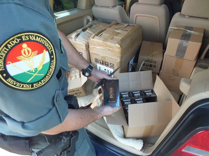 A Nemzeti Adó- és Vámhivatal (NAV) munkatársai több mint kétszáz üveg, hétmillió forint értékű parfümöt találtak egy személyautóban. A pénzügyőrök az M1-es autópálya komáromi szakaszán egy Budapestről érkező szlovák autót ellenőriztek. A kocsi átvizsgálásakor több mint 200 üveg, különféle márkajelzésű (Giorgio Armani, Chanel, Hugo Boss, Versace, Gucci, Lacoste) parfümöt találtak. Az előzetes szakértői vélemény szerint az illatszerek a vásárlók megtévesztésére alkalmas hamisítványok. A pénzügyőrök a mintegy hétmillió forint értékű parfümöt lefoglalták és iparjogvédelmi jogok megsértése miatt eljárást indítottak. A hamisított termékek kiszűrése a piacról azért is fontos, mert azok nemcsak a gazdasági szereplőinek okoznak jelentős károkat, hanem a vásárlókra nézve is egészségügyi kockázatot jelentenek.Twitter