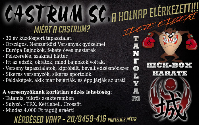 A CASTRUM egy olyan márka ami nem csak a Kyokushin Karate mezőnyben, de a Kick-box ringben is egyre nagyobb teret hódit. (Magyar Zoltán és Molnár Imre sikerei olvashatók itt).