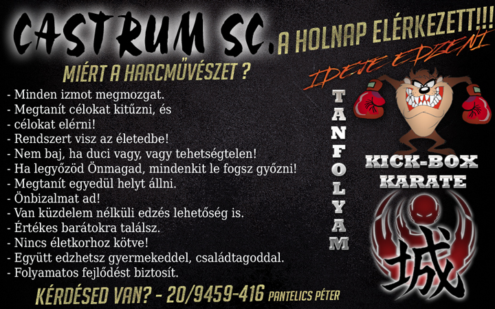 Hamarosan megkezdődik az iskola, és tanulás mellett, sokan mozgás kehetőséget keresnek gyereküknek, vagy épp önmaguknak. Mindenki tudja, hogy szükség van a mozgásra, mégis hajlamosak megfeledkezni róla. A Castrum új Kick-box, Kyokushin Karate és Kölyök Torna tanfolyamokat indít szeptembertől Kapuváron.