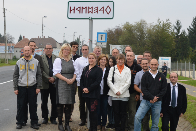 Talán nem túlzó az ünnep megnevezés, hiszen Kapuváron egész napos rendezvénysorozatot szerveztek az egységes székely-magyar rovás helynévtábla avatására október 4-én. Mindössze 4 éve indult útjára a Kárpát-medencei egységes székely-magyar rovás helynévtábla-mozgalom, de immár a 4 országban (Magyarország, Felvidék, Kárpátalja és Erdély), közel 300 településen majd 1000 db egységes külalakú tábla hirdeti az élő rovásműveltség fejlődését és egyben a nemzeti összefogást. Mivel átlagban szinte naponta "nő ki" új rovástábla a földből, már nem is kiemelt hírértékű egy-egy avatási ünnepség - mondhatjuk, szerencsére. Természetesen a Rovás Infó beszámol az avatási eseményekről, kiváltképp akkor, ha nagyszerű és követendő példát mutathat be. A Győr-Moson-Sopron megyei Kapuvár táblaállító közössége által megvalósított rendezvény azonban minden szempontból megérdemli, hogy részletesen tudósítsunk róla, ezzel is ihletet adva és megkönnyítve a további táblaállításokat jelenlegi határainkon innen és túl. A rovás napja - Kapuvár 2014 tavaszán indult a szervezőmunka Csákány Annamária vezetésével, a helyi közösségek tagjainak támogatásával. Az engedélyek megérkezése után méltó avatóünnepséget szerettek volna a táblaállítók, ezért elhatározták, hogy bővítik a programot, s így fejlődött az avatás nemzeti írásunk szakmai napjává Kapuváron az alábbi eseményekkel: Táblaavatás a 85-ös főúton Kapuvár 4 bejáratánál helyezték el a 246. sz rovás helynévtáblákat, az avatási ünnepség a Sopronba vezető 85. sz. főútnál zajlott. Az avatáson résztvettek a szervezők, az oktatási intézmények képviselői és Hámori György polgármester. Az avatóbeszédet Sípos László, a Rovás Alapítvány elnöke tartotta. Rovás az oktatásban - pedagógiai módszertani előadás Bár az új Nemzeti Alaptanterv (NAT) még név szerint sem említi a székely-magyar rovást, a növekvő érdeklődésre tekintettel egyre több oktatási intézményben igyekeznek a tanárok a diákok számára megszervezni a rovás tanítását. Ez szakköri formában, szaktantárgyak anyagába illesztve (történelem, irodalom, rajz, technika, nyelvtan, matematika), valamint versenyfelkészítés formájában történik. Jelenleg az oktatáshoz leginkább egy átfogó pedagógiai módszertan hiányzik, melyre óriási az igény. A rovás jelene és jövője - előadás A rovásműveltség korszerű alkalmazásairól, valamint a jelenleg folyó fejlesztésekről és nemzeti írásunk jövőbeli szerepéről tartott előadást Sípos László, aki kiemelte a technikai fejlesztések és az oktatás jelentőségét. Rovástáblák állításának menete - tájékoztató Az egységes Kárpát-medencei székely-magyar rovásos helynévtáblák sikere iránt sokan érdeklődnek. A kapuvári avatásra több környező településről is érkeztek vendégek, akik a Rovás Alapítvány képviselőitől tájékoztatást kaptak a táblaállítás ügymenetéről. Remélhetőleg hamarosan Kapuvár több szomszédos településén is viszontláthatjuk a rovás helynévtáblákat. Rovás alkalmazások és fejlesztések - szakmai műhely A szervezők és az előadók rövid szakmai műhelymunkát tartottak a nap végén, melynek eredményeképp olyan fejlesztési és rovás alkalmazási irányok ötleteit, megvalósítási lehetőségeit tekintették át, melyek hamarosan megjelenhetnek a hétköznapi rováshasználatban. Egyelőre azonban legyen meglepetés a kapuvári ötletbörze eredménye. (Rovás Infó) Twitter
