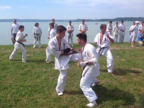 Pantelics Bence, a sikeres övvizsgája utánPantelics Bence, a sikeres övvizsgája utánA tábor záró momentuma a KYU és DAN vizsga, ahol az előre lépni szándékozók, 2,5 órás technika övvizsgán mutatják be felkészültségüket, és állóképességükről is tanúbizonyságot adnak. A 7 fős Dan Kollégium dícsérettel fogadta el Bence teljesítményét, és pár órás pihenőt követően, a 20 ellenfeles küzdelemre szólította a tűző napon.