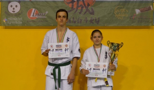 Pestszentlőrincen zajlott a 2016-os Utánpótlás Kyokushin Magyar Bajnokság. 14 Kyokushin karate szervezet 58 klubja képviselte magát a XIX. Bushido Kupán. Két versenyzővel vett részt a Castrum SC Kapuvár. Bán Lili és Németh Márk osztották a wazarikat. Arany- és bronzéremmel térhettek haza. A sportrendezvényre reggel érkező Castrumosoknak délután 5 óráig kellett várniuk, hogy bebizonyíthassák tudásukat, és megvívjanak a bajnoki címekért. Női -55 kg-ban Bán Lili Magyar Bajnoki címet szerzett Bán Lilinek kimondottan a begyakorolt szituációkat kellett jól kiviteleznie, hogy a KWU VB-n még rutinosabban alkalmazhassa a taktikákat. Edzője Sensei Pantelics Péter, szigorúan visszafogta az erős fizikumú tanítványt. A verseny bármennyire is fontos volt, ezúttal nem az aranyérem "mindenáron" való megszerzése volt a cél. Lili szófogadóan alkalmazta a taktikát, majd két gyönyörű fejrúgása és chudan wazarii mutatják, hogy jó irányba zajlik a munka! Bán Lili fejrúgása wazarit ér Németh Márk bronzérmes 2015-ben Márk megnyerte a -75 kg-os Ifjúsági korcsoport Magyar Bajnokságát. A címvédés majdnem sikerült, ám az elődöntőben egy apró figyelmetlenségnek köszönhetően, egy trükkös fejrúgással ellenfele megfosztotta a dobogó további magaslatától. Márkon egyre jobban látni, hogy kezd bele erősödni a súlycsoportjába. Németh Márk kampózva rúg fejre Készülés a Világbajnoskágra A Castrum idén már nem indul hazai versenyeken. Bán Lili, Végerbauer Roberta és Pantelics Bence gőzerővel készülnek a Kyokushin Utánpótlás Világbajnokságra, ahol 5 székesfehérvári társukkal képviselhetik Magyarországot 2016. december 3-4-n Bulgáriában.Twitter