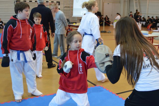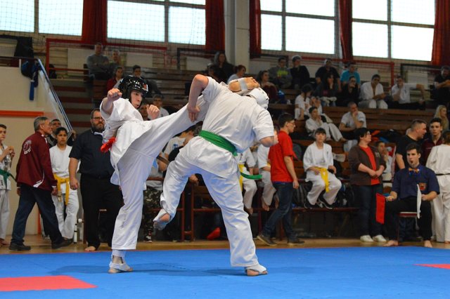 Nemrég még a 2016-os esztendő Castrumos kitüntetettjeiről számoltunk be, ma pedig az újabb 2017-es sikerekről szólnak a küzdősportos hírek. Szombaton, a várpalotai Diákolimpia Dunántúli elődöntőjéről 8 Castrumos versenyző 6 éremmel tért haza. Bemutatkoztak az "első versenyes" fiatalok is, akik belekóstolhattak a küzdősport világába. Diákolimpia elődöntő - Várpalota Bemelegítenek első versenyükre 348 fő nevezett 33 karate klub versenyzői. Kapuvárról, a Castrum SC 8 fővel képviselte magát. 3 első versenyes fiatalnak is szurkolhatott a csapat. Németh Jankó és Németh Virág a Gyermek I-es kategória férfi és női könnyűsúlyában, míg Hoffer András a Serdülő +60-as kategóriában mutatkozott be. Mindhárom versenyző először szembesült azzal, hogyan is zajlik egy ilyen verseny. Milyen az, mikor többszáz versenyzőtől, edzőktől és bíróktól zsong egy hatralmas sportcsarnok küzdőtere. Érthetően kicsit megvoltak illetődve, de a tatamin már elég harciasan küzdöttek. Jankó 2 remek fejrúgásával pontot is szerzett, ám mire igazán ráérzett volna a küzdelem rendszerére letelt a küzdőidő. Virág egy tapasztalt kéköves versenyző ellen igyekezett bizonyítani. Most még kevés sikerrel. András 3 körmérkőzést vívott ellenfeleivel, ügyesen gyűjtötte a pontokat, de a győzelemhez még több tapasztalatra és rutinra lesz szükség. Németh Jankó fejrúgása pontot ér Juniorok célja a dániai Európa bajnokság Túl jutni az elődöntőn, és bekerülni a veszprémi Diákolimpia döntőjének arany- és ezüstérmesei közé. Akiknek ez sikerül, azok képviselhetik majd hazánkat a kontinens viadalon. Kovács Róbert fejre támad Kovács Róbert hosszú idő kihagyása után tért vissza a küzdőtérre, és remek csatákat vívott a -65 kg-os junior férfi kategóriában. Egy "benézett" fejrúgás fosztotta meg a dobogó legfelső fokától. Pantelics Bence a junior -70 kg-os kategória favoritjaként osztotta villámgyors fejrúgásait, és erős ütéseit. Test KO-k, szép rúgások eredményeként gyűjtötte a wazarikat, ipponokat. Küzdelemben elért aranyérme mellé formagyakorlatban bronzérmet szerzett. Pantelics Bence pontot szerez Németh Márk (junior férfi -75 kg) megszerezte kategóriája aranyérmét. Gyors fejrúgásait ügyesen kamatoztatta, és egy kemény ki-ki meccset követően sikerült győznie a fehérvári Herczog Ádám ellen is. Bán Lili (junior női -55 kg) ezüstérmet szerzett. Első küzdelmében óvatlanságából kifolyólag ponthátrányból kellett visszafordítania, ami remekül sikerült. Aztán erős ütései rúgásai további győzelmeket szereztek a viadalok során. Ám a sorsdöntő küzdelemben VTSE-s vetélytársának mégis sikerült becsepésznie egy fejrúgást, és ezzel megfosztotta Lilit az arany csillogásától. Bán Lili Végerbauer Roberta (junior női +60 kg) Aranyérmének elvesztését figyelmetlenségének, és szabálytalanul kivitelezett technikáinak köszönhette. Ellenfele remekül fordította előnyére a Castrumos lány hibáit, aki hiába osztotta kemény rúgásait a többi küzdelemben, ezüstéremnél jobbra már nem számíthatott. Eredmények: Aranyérmesek: Pantelics Bence és Németh Márk Ezüstérmesek: Kovács Róbert, Bán Lili Végerbauer Roberta Bronzérmes: Pantelics Bence (KATA formagyakorlat) Twitter