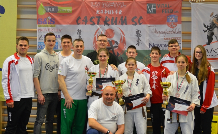Pénteken rendezték meg Répcelakon az MKSZ Felnőtt Knock Down Kyokushin Karate Magyar Bajnokságot, ahol több hazai karate szervezet is delegálta versenyzőit. A felnőtt versenyzői létszám jóval elmarad egy gyermek karate verseny részvételi létszámától, ennek ellenére sok remek küzdelemnek lehettek tanúi a látogatók. A Castrumosok 3 bronzérmet és 3 indulási jogot szereztek az idei lengyelországi Shinkyokushin Karate Európa Bajnokságra. A rendezvény színvonalát emelte a soproni dr. Szepesi Csenge Világ- és Európa bajnok részvétele is, aki 7 hónapos kisfiával ezúttal díszvendégként vett részt a Felnőtt Magyar Bajnokságon! A kapuvári Castrum SC kezdetben 4 fővel nevezett a Magyar Bajnokságra, de a váratlanul lebetegedett -55 kg-os Németh Veronika nem tudott részt venni a versenyen. (Ő korábbi eredményeivel, mint Európa Válogatott kerettag ettől függetlenül is részvételi joggal bír a májusban megrendezésre kerülő kontinens viadalon.) A junior korcsoportból előlépő Bán Lili a -60 kg -os női kategóriában rengeteg kellemetlen pillanatot okozott az őt dobogón megelőző idősebb társainak. A csapat csak "A Tank"-ként becézett fiatal versenyző teljesítményében most sem csalódott. A kategória favoritjait 9-9 percen keresztül űzte és ostromolta, miközben egy lépést sem tett hátrafele. Az, hogy a bírók valami érthetetlen döntést hoztak, cseppet sem értékeli alul a Castrumos versenyző teljesítményét. A veszkényi sportoló egyenlőre még csak bronzéremmel büszkélkedhet, de hamarosan nagyobb eredményre is számíthatunk tőle. Szondi Anikó a -65 kg-osok közt, míg Végerbauer Roberta az abszolút kategóriában állhatott fel a dobogó harmadik fokára. „- Veronika EB indulási joga mellé még két kvóttát szereztük a két hónap múlva - pont a szóbeli érettségik idejére eső -, Shinkyokusin Európa bajnokságra. Hogy ebből, mennyit fogunk felhasználni, még a versenyzőkkel való felkészülési program egyeztetését követően tudunk majd csak nyilatkozni. Az biztos, hogy csak úgy fogunk a nemzetközi vonalba lépni, ha sportolóink az ilyen szinten elvárt munkát is vállalják.”- mondta Sensei Pantelics Péter a Castrum SC elnöke. Twitter