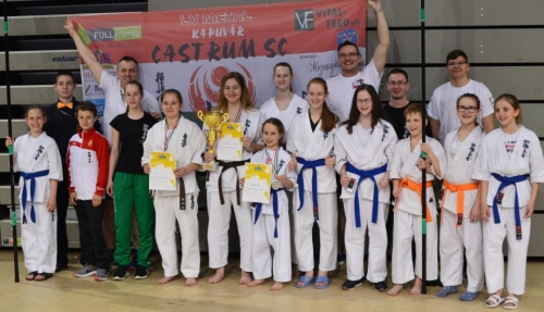 11 fős csapattal indult a Castrum az idei Kyokushin Karate Diákolimpián. Egy arany-, és két ezüstéremmel tértek haza a kapuvári karatékák Veszprémből az arénából. A fiatal Németh Virág, második Diákolimpia döntőjén már a dobogón állhatott. 59 klub 569 versenyzője nevezett, és indult a 2017/18-as tanév Diákolimpia döntőjén Veszprémben. Az indulók létszáma azt jelezte, hogy minden súly-, és korcsoportban jelentős számú versenyzőre lehetett számítani. A kapuvári Castrum 2. vonalának versenyzői közül sokan idén váltották ki első versenyzői licenszüket, és Németh Virágot leszámítva, még sosem indultak ekkora versenyen. Ennek ellenére a csapat nagyon harciasan dolgozott, és sokszor hajszál híjján maradtak csak le a dobogóról.Végerbauer Roberta utolsó Diákolimpiai szereplését aranyéremmel, míg Bán Lili ezüstéremmel zárta le. - Sokan meglepődtek, miért ünnepel az edző, mikor a versenyzője épp vereséget szenvedett. Erről kérdeztük Sensei Pantelics Pétert: - Számunkra ezek a küzdelmek nem vereségek voltak, hanem bizony győzelmek! A Castrum padlása tele van érmekkel, kupákkal. Ezen a DOL döntőn az volt a cél, hogy ezek a fiatal versenyzők először önmagukat győzzék le, és megmutassák a küzdelmeik során azokat, amiket gyakoroltak. Most nem álltam le vitatkozni a bírókkal sem, hogy miért nem ippont ítéltek Nyikos Eszti két gyönyörű fejrúgására, holott kétszer is kijárt volna neki. Csak örültem annak, ahogy az a kislány felülkerekedett önmagán, és ellenfele még ha győzött is, láthatóan megviselte őt Eszti rúgó ereje. Fandák Ajándék is legnagyobb mumusát, Önmagát győzte le mikor a nála magasabb övfokozatú versenyzőktől gyűjtötte be a pontokat, és a győzelmet. Szalai Kitti hajszál híján maradt le a dobogóról, míg Csonka Lili-t is egy apró "figyelmetlenség" hozta hátrányba. Szücs Hanna, Bacsó Marci, Serfőző Zalán, Kovács Kitti is sokat lépett előre, még akkor is, ha ezen a hétvégén nem állhattak dobogóra. - Sok klubban csak a sikeres gyerekeket emelik ki. Miért van ez máshogy a Castrumban? - Nálunk ugyanúgy fontos az a fiatal is, aki nem versenyez, vagy épp nem olyan sikeres. Ennek a csapatnak mindenki hasznos, és teljesértékű tagja lehet, ha dolgozik érte. A siker felé vezető úton elég sok akadály van. Ahhoz, hogy valaki elérje a célját, mindenen túl kell jutni. Ez olyan, mint egy számítógépes játék, csak épp ez a való élet. Ezeknek a fiatal versenyzőknek most az első pályán kellett túl jutniuk, önmagukat kellett legyőzniük. Aztán jöhet majd a következő. A Castrum egy remek kis közösség. Küzdősporttal, versenyekkel, edzőtáborokkal. De emellett kőkemény biliárd, csocsó, darts és 'Fekvőtámasz Póker' partik zajlanak. A fiatalok szeretnek itt, és előbb - utóbb a jó példa ragadós lesz. Az első vonal nemzetközi sikerei húzzák a 2. és 3. vonalat is. Valakinek az aranyérem a siker, valakinek pedig az, hogy kapaszkodás nélkül fel tudjon menni a lépcsőn! Nálunk az utóbbi is bajnok! - nyilatkozta Sensei Pantelics Péter edző.Twitter