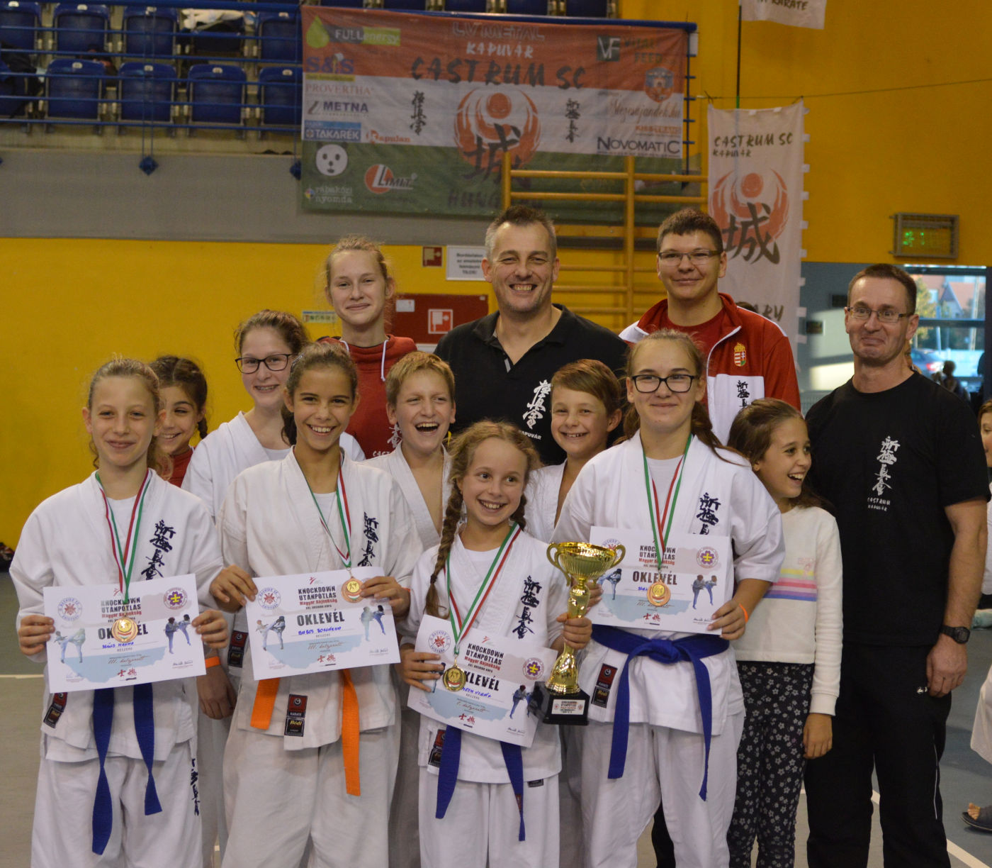 13 országos kyokushin karate szervezet, 57 egyesületének 400 versenyzője küzdött szombaton az első helyekért Pestszentimrén, az Utánpótlás Magyar Bajnokságon. A Magyar Karate Szövetség Knock Down bajnokságán a Castrum karatékái egy arany-, és három bronzérmet szereztek.