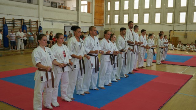 A 19 esztendős Bán Lili, a Castrum SC Kapuvár válogatott versenyzője, tanúbizonyságot tett az SHSZ (Shinkyokushin Harcművész Szövetség) Dankollégiuma előtt az elmúlt heti Nemzetközi Edzőtáborban. A fiatal karatéka a 3 órás technikai vizsgát követően 10 versenyküzdelmet vívott ellenfeleivel, és teljesítményével kiérdemelte az 1. Dan fokozatot! Lili 11 évesen kezdett el karatézni, majd pedig 12 évesen versenyezni. Azóta mindennapjai a kyokushin karatéval telnek. A győri Bercsényi sportiskolában 2018-ban érettségizett, majd idén nyáron sikeres OKJ-s Karate Szakedzői vizsgát tett. Tanulmányait a győri Széchenyi Egyetemen kívánja folytatni gazdaságinformatikus szakon, amihez minden pontszáma megvan. 14 főnek sikerült a technikai vizsga "- Már kezdő karatésként az volt az álmom, hogy egyszer fekete öves legyek, de tudtam, hogy ide nagyon hosszú út vezet, nagyon sok munka és kitartás. Nagyon ragaszkodtam ehhez az álomhoz, és szerettem volna idén teljesíteni, ami sikerült is. Apró léptekben haladtam felé, és a sikeres övvizsgák után elérkezett az idő, hogy sikeres dan vizsgát tettem. Óriási boldogság ez számomra, aminek átélését kívánom minden kezdő és tanuló karatékának!" - nyilatkozta Bán Lili portálunknak. Sokan szeretnének fekete öves mesterek lenni, de ez az út tradíciókra épült. Itt nincs applikáció, amit le lehet tölteni, és danos mesterré lehet válni. Munka van. Vér, verejték és fáradtság Ezek mind hangzatos szavak. De azok, akik belekóstolnak a kyokushin karatéba tudják, hogy ott ez mind igaz. Semmit nem adnak könnyen. Mindenért meg kell küzdeni. A fájdalom mind velejárója a sikernek. Azt mondják, "Ha nem fájna, mindenki csinálná!" Valójában, csak az igazán kitartóak jutnak el a fekete övig. Addig ugyanis számos megpróbáltatásnak vannak kitéve a sportolók, és rengeteg a tanulni, gyakorolni valójuk. Aki viszont kiérdemli a fekete övet, méltón büszke lehet magára. Egy kicsit szusszanhat, majd újra nekiveselkedhet a tanulásnak, és a munkának. Mert az igazi munka, most kezdődik! Fekete övesként, az elvárások még nagyobbak. A kyokushinban azt vallják, hogy a "Senpai kötelessége a kohai jóléte" - vagyis, a mesternek kötelező megteremteni a tanítványnak a feltételeket ahhoz, hogy minél több tudást szívhasson magába. Bán Lili a Castrum 7. fekete öves mestere, és ahogy az egyesület szakmai útját figyeljük, bizonyára sokan lesznek még az elkövetkezendő esztendőkben, akik felköthetik a felelősséggel járó fekete övet a derekukra! Gratulálunk Lili Senpai! Twitter