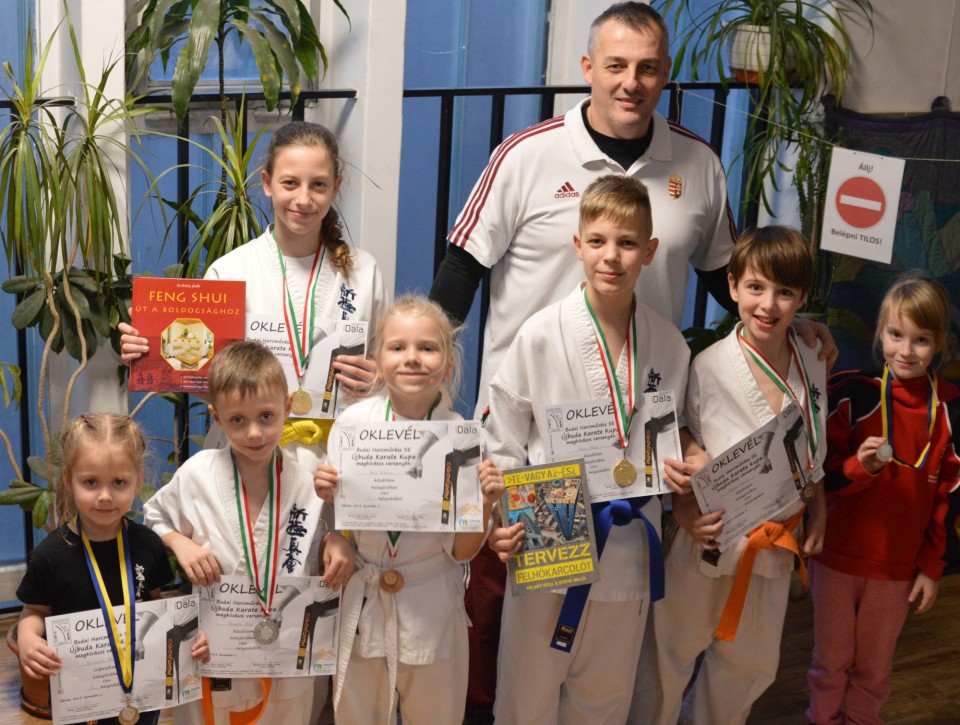 December 1-én, a XVII. Újbuda Karate kupán Budapesten léptek tatamira a Castrum legfiatalabb tagjai. Az ovikaratésok csipeszharcban, míg a kicsit idősebbek testpajzsos küzdelemben mérettettek meg. 3 arany-, 5 ezüst- és 3 bronzérmet vívtak ki a kapuváriak. Az újbudai versenyre 222 nevezés érkezett, és igazán remek családi hangulatban zajlott. A legfiatalabb korosztály is képviselhette magát. Ők „Csipeszharcban” mérték össze tudásukat. Aranyérmes: Horváth Réka Ezüstérmes: Zugó Leonie, Horváth Alíz, Szalai Anna Bronzérmes: Kovács Veronika, Szabados Réka A Csipeszharcot követően testpajzsos küzdelemben is remekeltek a Castrumosok. Ebben a versenyszámban 2 arany- (Szücs Hanna, Szücs Ákos), 2 ezüst- (Horváth Máté, Szalai Márk) és 1 bronzérem (Bors Jázmin) született. A „Legharciasabb női versenyző” különdíját kategóriájában Bors Jázmin érdemelte ki! „- A Castrumban még nincs vége az évnek. Fiataljainkkal folyamatosan járjuk az országot, és remek eredményeket harcolunk ki. Az újbudai verseny különösen nagy feltöltődést adott, mert itt az Ovikaratés gyerekek léphettek tatamira. 1 perces „Csipeszharcokat” vívtak ellenfeleikkel, ahol boldogan, mosolyogva szedték le a csipeszeket a „küzdelmek” során. Ebben a gyorsaságot, koordinációt, egyensúlyt és ügyességet kívánó versenyszámban felszabadultan küzdöttek. Úgy vélem a gyerekek és a szüleik is óriási motivációval töltődtek fel a versenyt követően. És természetesen engem is felvillanyozott, ahogy láttam az aprótalpú „nindzsáimat” a tatamin mozogni, és győzedelmeskedni!” – mesélt Sensei Pantelics Péter a hétvégi élményekről.Twitter