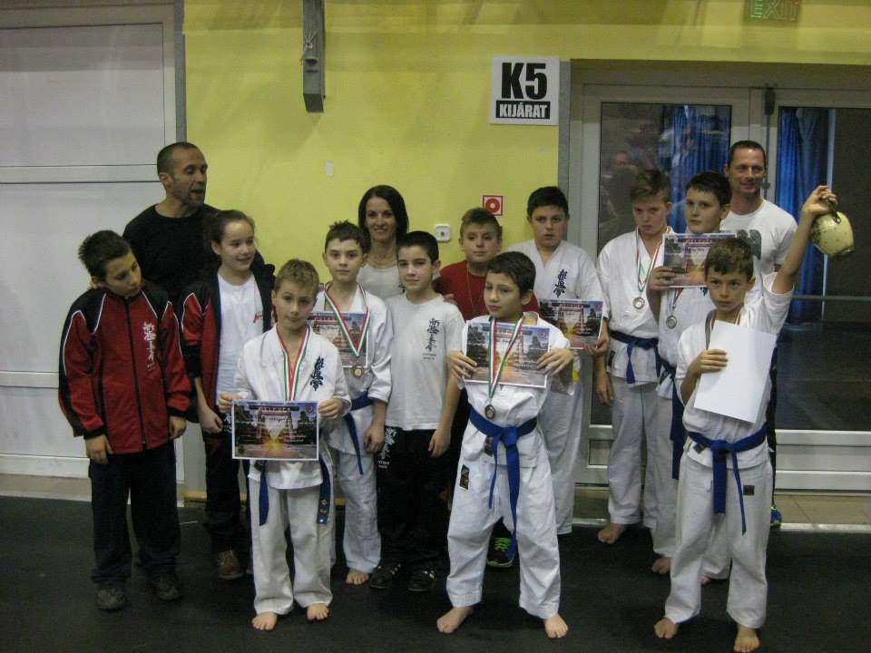 Gyöngyösre utaztak a Castrum SC Utánpótlás harcosai, az MKKSZ Országos Bajnokságára. A versenyre 259 fő nevezett 30 egyesületből. A Castrum 11 versenyzője közül, heten jártak sikerrel, és állhattak fel a dobogóra. A 270 km-es távot a Kiss Trans különjárata segített áthidalni. A 19 fős busz csurig telt versenyzőkkel, edzőkkel, és szurkolókkal. A szombati versenyre, már pénteken elutaztak városunk karatésai. A mérlegelést, és orvosi vzsgálatot a küzdelmek követték. A csatába, dr. Szalai László "hadúr" vezette a Castrumosokat Németh Gábor, és Pappné Kovács Edit társaságában. Az év utolsó versenyén a Castrum SC karatékái a következő eredményeket érték el. Eredmények:Németh Raul csatába indul Németh Raul aranyéremDezamics Máté ezüstérem, Dezamics Bence, Szalai Benedek, Papp Csongor, és Dukai Norbert bronzérmesek. Castrumos harcosok, és edzőik dr. Szalai László, Pappné Kovács Edit, Németh Gábor és a harcos tanítványok További képek a Facebookon >>> Twitter