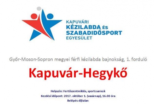 Hosszú évek után, ismét összeállt és pályára lép a bajnokságban a kapuvári férfi kézilabda csapat. A Győr-Moson -Sopron megyei férfi kézilabda bajnokság 1. fordulóját Fertőszentmiklóson, a sportcsarnokban játszák a kapuvári kézilabdásaink, október 1-én vasárnap. A kezdési időpont 16:00 óra. A belépés díjtalan. Aki teheti, látogasson el Fertőszentmiklósra, és buzdítsa a kapuvári csapatot! Hajrá Kapuvár! Hajrá fiúk! Twitter